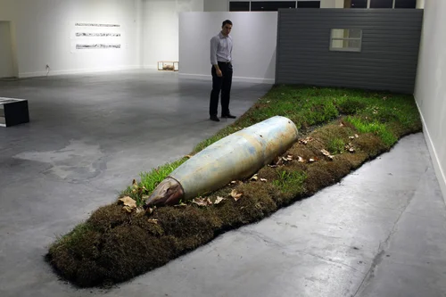 "The Best-Laid Plans" exists in the space between mankind's accomplishments and failures, dwelling in a moment of ambiguity. Works in the show reflect an evolving history of construction, industrialism, and humans' relationship to nature, with a nod to post-WWII attitudes and morals. Full-size woodblock prints of chipboard and plywood highlight and celebrate the engineering of nature by human hands. Other pieces, such as "Delivery"--an eight-foot long artillery shell haphazardly dropped onto a grassy suburban lawn--are installations of plans gone awry. Viewers are invited to explore the work from an insider's perspective and draw their own conclusions of success and sacrifice.
